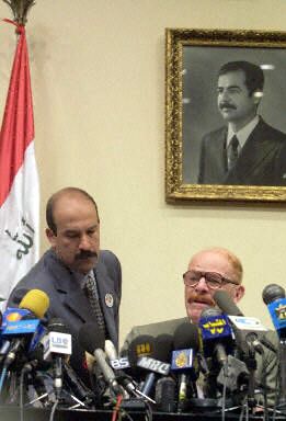 薩達姆的高級助手伊扎特-伊伯拉希姆在巴格達召開的新聞發(fā)布會上公布了上述官方統(tǒng)計結(jié)果,他表示伊拉克有資格參加全民公決的公民在周二當天幾乎全部參加了投票。