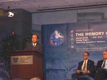 中國(guó)國(guó)務(wù)院新聞辦主任趙啟正主持了今晚的開(kāi)幕式。他說(shuō):今天我們共同回憶當(dāng)年中美兩國(guó)在反法西斯戰(zhàn)爭(zhēng)中極其壯烈的歷史和兩國(guó)人民結(jié)下的深厚友誼。有時(shí)歷史會(huì)沾滿灰塵,需要去揩拭,讓它重新發(fā)光。當(dāng)年故事的主人公年事已高,我希望把這段歷史告訴年輕人,這是我們舉辦這次活動(dòng)的目的。