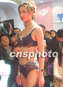 圖:北京國際內衣世界展上模特展示性感內衣
