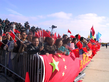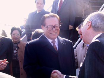 國務院副總理錢其琛及夫人周寒瓊、中央政策研究室主任滕文生、外交部副部長李肇星、中央政策研究室副主任王滬寧、中央辦公廳副主任由喜貴、外經貿部副部長馬秀紅和國臺辦副主任周明偉等江澤民主席訪美的陪同人員同機抵達芝加哥。國家發(fā)展計劃委員會主任曾培炎已先期抵達。中國駐美大使楊潔篪、中國常駐聯(lián)合國代表王英凡到機場迎接江澤民主席一行。(完)