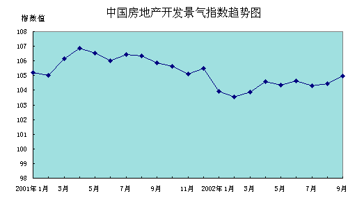 今年前9個月,國房景氣指數(shù)總體走勢比較平穩(wěn),波動幅度不大。“國房景氣指數(shù)”盡管仍然低于去年同期水平,但近兩個月以來,連續(xù)保持上揚態(tài)勢。