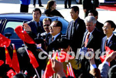 江澤民主席應布什總統(tǒng)邀請訪問美國,二十二日抵達芝加哥奧黑爾機場,向前來迎接的各界人士揮手致意。作者:王瑤