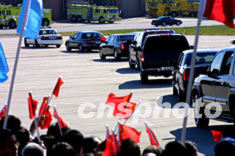 22日,江澤民主席應(yīng)布什總統(tǒng)邀請訪問美國,抵達(dá)芝加哥奧黑爾機(jī)場,圖為江主席一行乘坐的車隊離開機(jī)場駛往市區(qū)。作者:王瑤