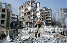 三峽導(dǎo)流明渠截流在即,重慶奉節(jié)舊縣城四十多棟高樓,在陣陣炮聲中夷為平地,僅一個(gè)秋季就拆除清理了一百一十八萬(wàn)平方米的舊樓盤。作者:李中全
