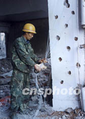 三峽導(dǎo)流明渠截流在即 ,爆破人員在重慶奉節(jié)舊縣城,給要拆除的房子裝彈藥,準(zhǔn)備進(jìn)行一次性爆破拆除。作者:李中全
