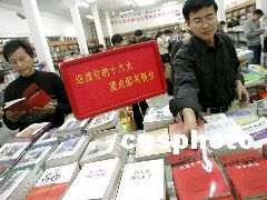 黨的十六大即將召開,溫州市新華書店專門布置了一個《迎十六大重點圖書》展臺,展出圖書有《江澤民“三個代表”思想研究》,《從民主新路到依法治國》等20余種,以滿足讀者的需求。劉峰 攝