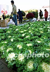 為迎接中共十六大的召開,北京西單廣場十一月布置的花卉雕塑別出新意,部分擺設(shè)采用蔬菜為材料,象征綠色生活。作者:俊畫