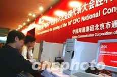一名前來采訪中國共產(chǎn)黨第十六次全國代表大會(huì)的記者六日在北京梅地亞中心查閱中共十六大專題網(wǎng)站資料。即將召開的中國共產(chǎn)黨第十六次全國代表大會(huì)引起中外媒體的廣泛關(guān)注。作者:毛建軍