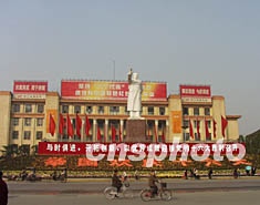 四川省會成都盛裝喜慶中共“十六大”召開,鮮花簇擁在天府廣場毛澤東像前。作者:肖龍聯
