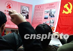 中共十六大八日在北京召開之時,北京大學和首都經(jīng)貿(mào)大學的學生在是日開放的馬克思展廳舉起拳頭,宣誓入黨。作者:賈國榮