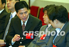 中國共產(chǎn)黨第十六次全國代表大會十日繼續(xù)舉行分組會,江蘇遠(yuǎn)東集團(tuán)董事長蔣錫培在江蘇代表團(tuán)分組會上與代表一起討論十六大報告。作者:毛建軍