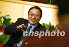 中共十六大代表、聯(lián)想集團(tuán)董事局主席柳傳志十一日晚在十六大新聞中心接受中外記者訪問。作者:毛建軍