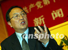 組圖:十六大代表柳傳志接受記者訪問