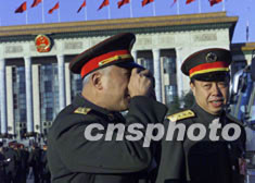 出席中共十六大的白發(fā)將軍在北京人民大會堂前拍攝有紀念意義的瞬間。作者:滿會喬