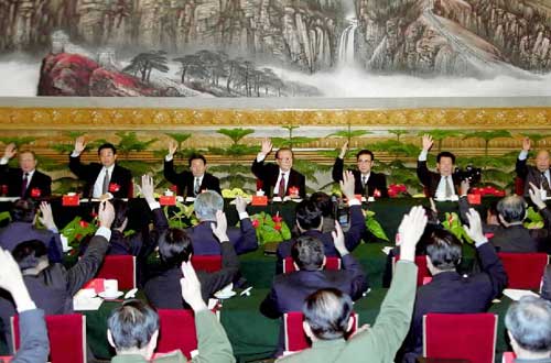 會(huì)議以舉手表決的方式,通過了經(jīng)各代表團(tuán)差額預(yù)選產(chǎn)生的中央委員會(huì)委員、中央委員會(huì)候補(bǔ)委員、中央紀(jì)律檢查委員會(huì)委員候選人名單,提請(qǐng)各代表團(tuán)再次醞釀。