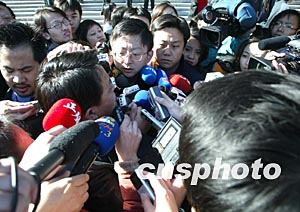 圖:記者采訪出席中共十六大閉幕會的代表