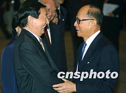 中國國務(wù)院總理朱镕基,11月19日下午在香港會見香港商界的諸位重量級“老板”,長江集團主席李嘉誠等參加會見。任晨鳴 攝