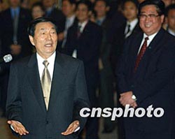 中新網(wǎng)香港11月19日電 在香港出席第十六屆世界會計師大會的國務院總理朱镕基,今天下午在會展中心會見了中央駐港機構(gòu)和部分中資企業(yè)的主要負責人。朱镕基感謝他們?yōu)樨瀼亍耙粐鴥芍啤狈结樅途S護香港的繁榮穩(wěn)定所做的工作,同時要求他們認真學習,嚴格自律,為香港的繁榮穩(wěn)定添磚加瓦。