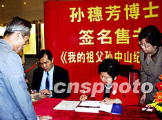 孫中山先生之嫡孫女、孫科的女兒孫穗芳博士,二十四日在廣州廣東省立中山圖書館舉行簽名售書活動,推出《我的祖父孫中山先生紀念集》。該書共收錄400多張歷史照片和200多份墨寶,將孫中山先生一生為救中國、不停奔走、呼吁革命的真實過程重新展現在讀者眼前。作者:羅仰明