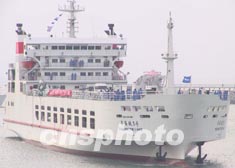 四時(shí)三十五分,為“粵海鐵一號(hào)”處女航護(hù)航的上海江南造船廠的技術(shù)人員,將潔白的船纜拋向海南大地,漸漸地,鋼鐵塑就的巨輪溫柔地與海南溫暖的大地接觸了。
