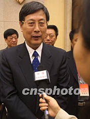 全國政協(xié)常委、民進中央副主席黃孟復二十六日在中華全國工商業(yè)聯(lián)合會九屆一次執(zhí)委會上,當選為全國工商聯(lián)主席。圖為黃孟復主席接受記者采訪。作者:史利