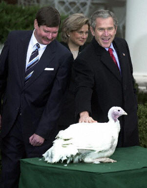 圖:美國總統(tǒng)布什出席感恩節(jié)火雞放生儀式