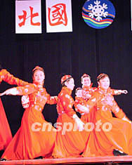 上千名觀眾于當(dāng)?shù)貢r(shí)間十一月三十日觀看了以“北國(guó)風(fēng)采”為題的渥太華華人歌舞晚會(huì)。表演者和主辦者都是近幾年定居加拿大渥太華的中國(guó)移民。圖為表現(xiàn)歡樂草原、奔放豪邁的蒙古舞蹈。作者:蒲力