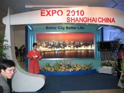 在中國(guó)的展臺(tái),外層設(shè)有照相機(jī)鏡框形狀的白色門(mén)框,蘊(yùn)涵“聚焦”之意。在門(mén)框上,還做成了一個(gè)激光豎琴,手指撥動(dòng)激光束便能聽(tīng)到動(dòng)聽(tīng)的旋律。今天一位中國(guó)姑娘將在這里演奏中國(guó)申博宣傳片的主題曲———《好一朵美麗的茉莉花》。