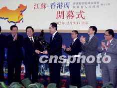 由香港特別行政區(qū)政府和江蘇省人民政府攜手舉辦的“江蘇·香港周”9日上午在南京國際展覽中心隆重開幕,香港展覽會亦同期拉開帷幕。香港工商及科技局局長唐英年與江蘇省副省長梁寶華共同為開幕式剪彩。作者:丁東升