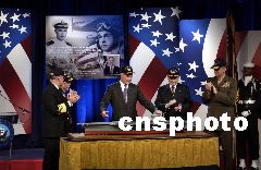 美國第10艘尼米茲級航空母艦--CVN 77以第41任總統(tǒng)喬治·布什(老布什)名字命名。圖為12月9日,喬治·布什在弗吉尼亞州阿靈頓參觀CVN 77模型。Ic/cnsphoto 攝