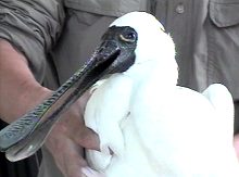 目前,救治中的13只黑面琵鷺,9只在臺(tái)南縣家畜疾病防治所,4只在“行政院農(nóng)業(yè)委員會(huì)”設(shè)于南投縣的特有生物保育中心。
