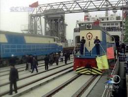 據(jù)介紹,重載列車上船和下船是此次聯(lián)合調(diào)試的關鍵環(huán)節(jié),為了確保聯(lián)調(diào)成功,聯(lián)調(diào)指揮部組織專家組對列車駛上南港碼頭的方案進行了細化,并對個別技術細節(jié)作了調(diào)整。今天上午十點零五分,這兩列通過瓊州海峽這段移動鐵路到達海口的列車終于安全駛上了南港碼頭的鐵路棧橋。