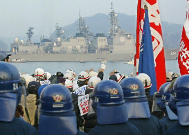 這艘日本軍艦將展開約四個月的任務,主要是保護對美艦等提供海上加油的日本補給艦和航行于當?shù)睾S虻娜毡居洼,并針對美軍可能展開對伊拉克的軍事行動擴大對美軍的后方支持。