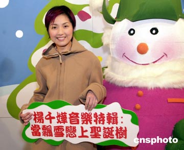 歌星楊千樺12月17日在香港出席其音樂特輯“當飄雪戀上圣誕樹首映禮”。楊千樺、古天樂等早前為該音樂特輯遠赴日本北海道取景拍攝,并將在本月22日晚于翡翠臺播映。鄧慶樂攝