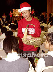 Twins成員鍾欣桐向?qū)W生派發(fā)圣誕禮物