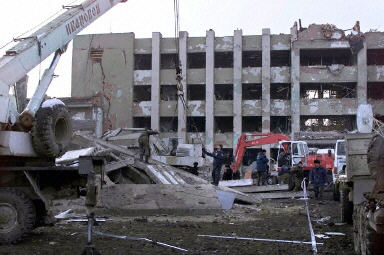 12月27日,車臣首府格羅茲尼的政府大樓接連發(fā)生兩起自殺汽車炸彈爆炸事件,造成至少57人死亡,120人受傷,大樓受到嚴(yán)重的損毀。