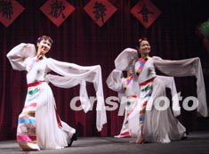 渥太華中國大專校友會等八家華人社團二十八日晚舉行慶祝新年聯(lián)歡會。圖為當?shù)厝A人自編自演的西藏舞蹈《凈土》。作者:蒲力