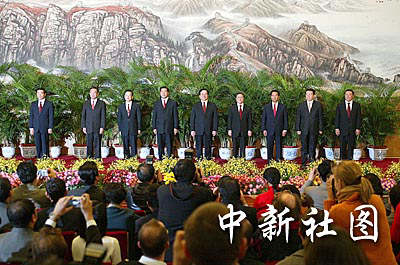 中國(guó)共產(chǎn)黨十六屆一中全會(huì)十五日上午在北京人民大會(huì)堂舉行,胡錦濤、吳邦國(guó)、溫家寶、賈慶林、曾慶紅、黃菊、吳官正、李長(zhǎng)春、羅干等九人當(dāng)選為新一屆中共中央政治局常委。作者:毛建軍
