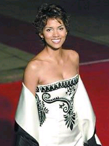 黑美人在007新片《明日再會(huì)》的首映禮上,儀態(tài)萬方,白色的絲綢本來就非常亮眼,再加上她的膚色及黑色的花紋,搭配得非常雅致,實(shí)在是上佳之作。