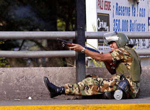 在混亂之中,身份不明的槍手向總統(tǒng)的反對者開槍射擊,至少造成兩人死亡。據(jù)報(bào)道,這場由反對派領(lǐng)導(dǎo)的旨在把查韋斯趕下臺的抗議活動已經(jīng)整整持續(xù)了一個(gè)月。