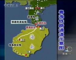 粵海鐵路是“九五”期間全國鐵路重點工程項目。這項總投資為四十五億元的工程,作為中國第一條橫跨海峽的鐵路,它由湛海線、火車輪渡和海南島西環(huán)線“二線一渡”組成。橫貫雷州半島的湛海線于二00一年十二月二十八日建成通過驗收,并將于今年一月二十八日開通貨運。瓊州海峽鐵路輪渡包括跨;疖嚩纱⒒浐hF路海峽北港與南港、?谡、?谀险炯安糠终揪工程,目前各項工程均已全部完工。全長一百八十二點五公里的海南西環(huán)線正加緊建設(shè),今年內(nèi)將全面完工并全線投入使用。
