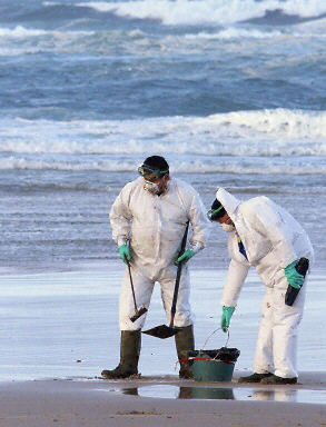 1月4日,沉沒在西班牙西北部海域的“威望”號(hào)油輪上泄漏的燃料油已經(jīng)漂到法國海岸,對(duì)當(dāng)?shù)氐穆糜螛I(yè)構(gòu)成嚴(yán)重威脅。法國有關(guān)當(dāng)局已抽調(diào)大批工人進(jìn)行清理,燃料油對(duì)海洋生態(tài)造成嚴(yán)重污染。