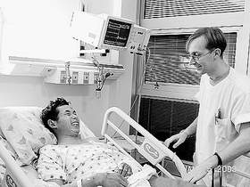 光明日?qǐng)?bào)記者還碰到一位以色列青年,他學(xué)過兩年中文,聽說有中國(guó)工人受傷,就自愿趕到醫(yī)院做翻譯。在這位以色列青年幫助下,記者又見到了來自中國(guó)沈陽(yáng)的王治友。他傷勢(shì)較輕,右腿和右腋下被炸飛的金屬片扎傷,右腿傷口內(nèi)留下金屬片,次日要?jiǎng)有∈中g(shù)。