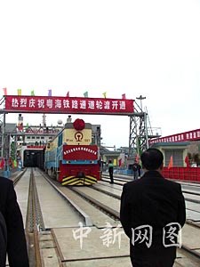“粵海鐵一號”渡船注定會在中國交通史上寫下濃濃的一筆。隨著它今天上午的首航,中國大陸與海南島之間沒有鐵路相通的歷史一去不復(fù)返了。記者有幸參加“粵海鐵一號”的處女航,印象十分深刻!盎浐hF一號”是粵海鐵路跨海運(yùn)輸?shù)闹饕煌üぞ,近日從上海抵達(dá)海口,該渡輪總造價四點(diǎn)二億元人民幣,為柴油機(jī)雙推進(jìn),整個渡輪共分三層,最頂層可同時停放裝滿貨物的汽車五十輛,中間層載客,前后四個大客艙;最下層裝載客運(yùn)列車,四對鐵軌各長一百四十五米,可停放四十節(jié)貨車或十八節(jié)客列。據(jù)悉,“粵海鐵二號”也將于今年四月交船并投入使用,屆時,將與“粵海鐵一號”對開“擺渡”。