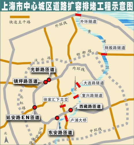 越江工程———盧浦大橋、外環(huán)隧道將在今年上半年通車,大連路隧道9月通車;復(fù)興路隧道預(yù)計明年建成通車;翔殷路隧道今年開工。