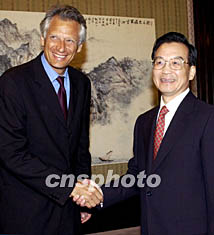中國國務(wù)院副總理溫家寶,九日在北京會見法國外長德維爾潘。作者:鄭萍萍