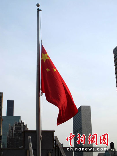 中國常駐聯(lián)合國代表團(tuán)下半旗為地震遇難同胞致哀