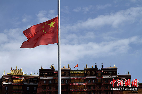 圖:國務(wù)院新聞辦降半旗為玉樹遇難者志哀