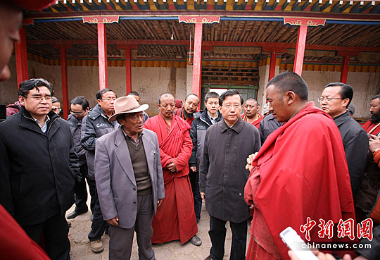 青海省委書記強(qiáng)衛(wèi)問候結(jié)古寺受災(zāi)僧侶