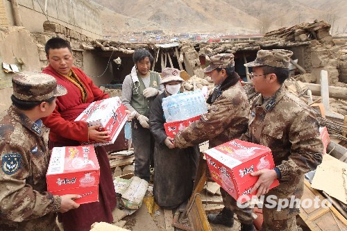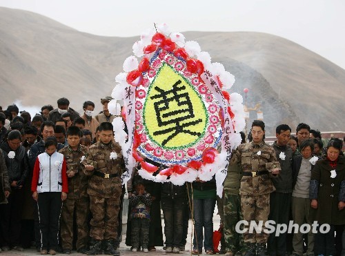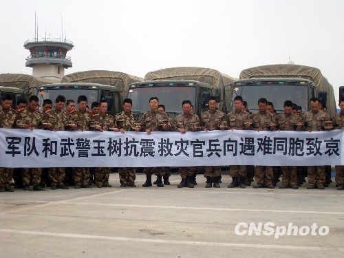 圖:玉樹機(jī)場抗震救災(zāi)官兵向遇難同胞致哀